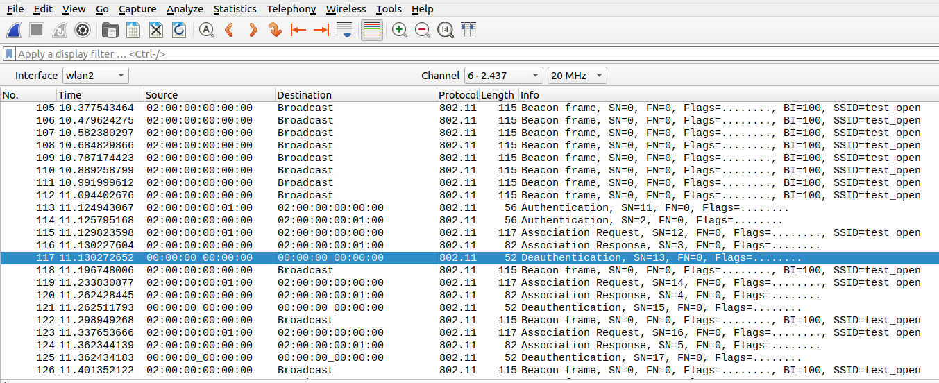 Observe 116 is association response packet and 117 is deauthentication packet