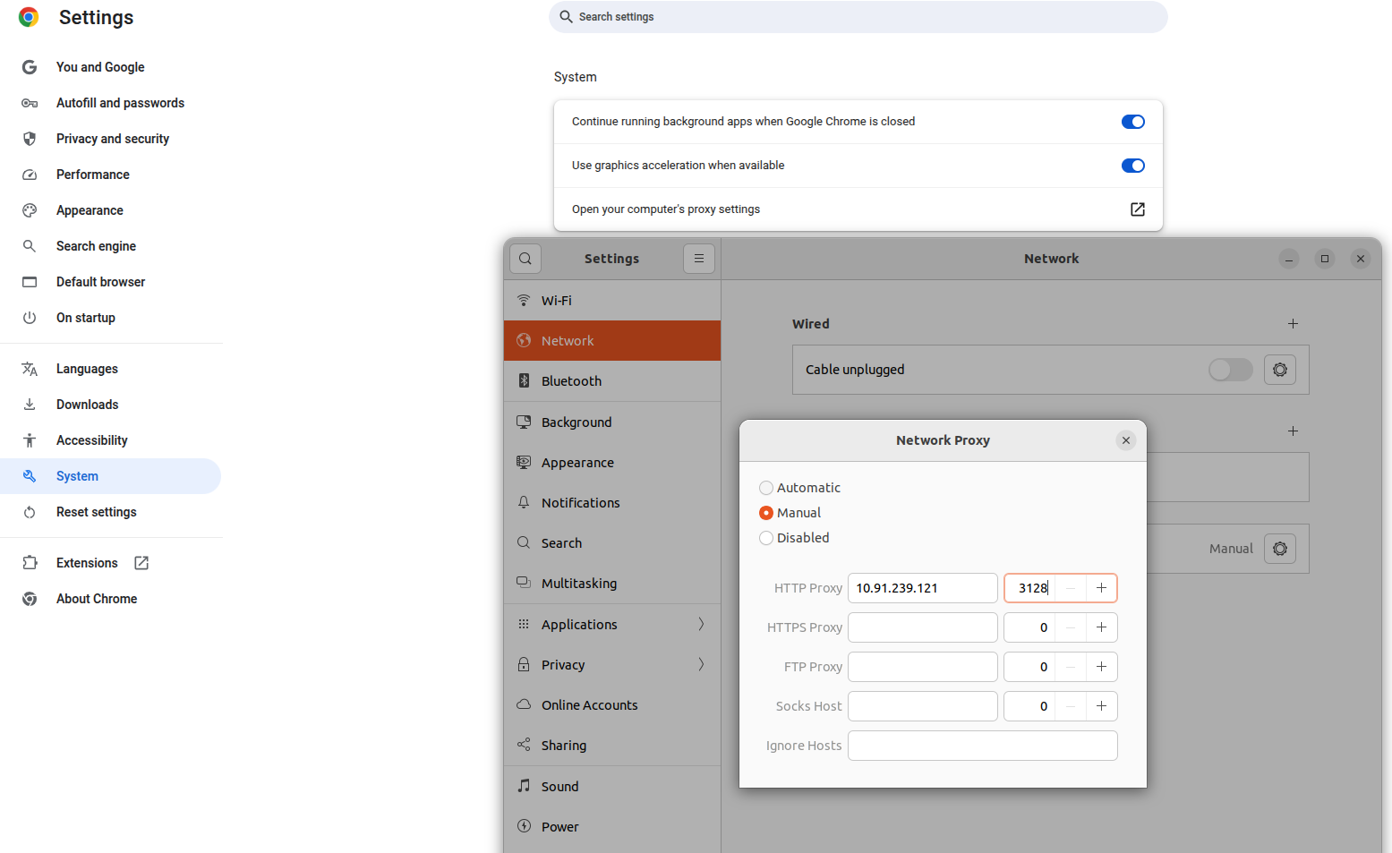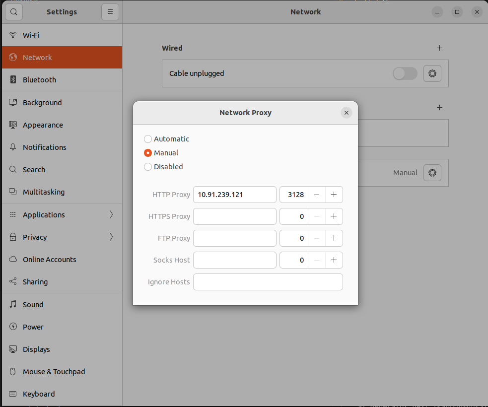 test:~$ wget -e use_proxy=yes -e http_proxy=http://10.91.239.121:3128 http://www.google.com