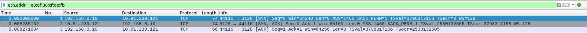 Packet 1:SYN - client(10.91.239.123) -> proxyserver(10.91.239.121)