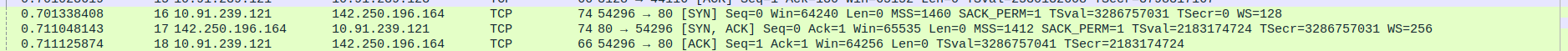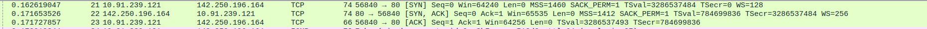 Packet 21:SYN - proxyserver(10.91.239.121) -> webserver(142.250.196.164)