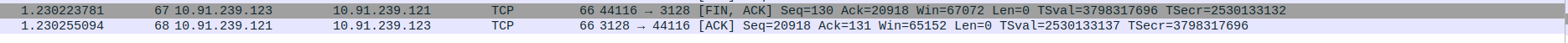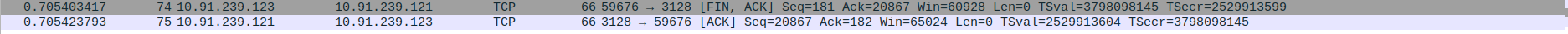 Packet 61:FIN-ACK - proxy(10.91.239.121) -> webserver(142.250.196.164)