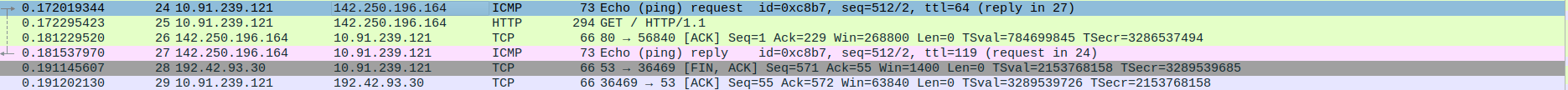 Packet 24:The client sends an ICMP Echo request (ping) to Google
