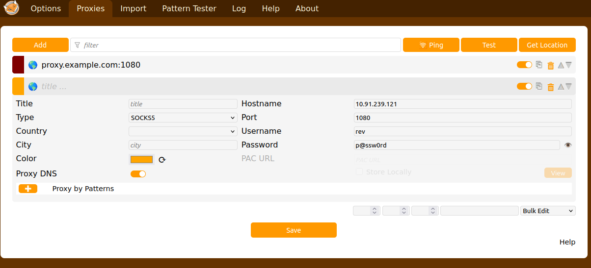 - Enter Proxy settings