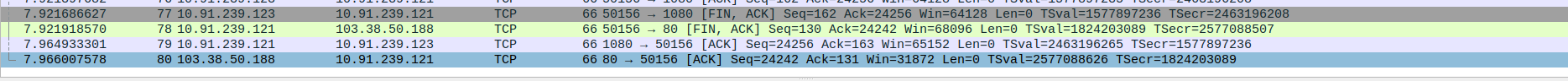 Packet 80: Webserver (103.38.50.188) → Proxy (10.91.239.121) – Final ACK confirming full session termination