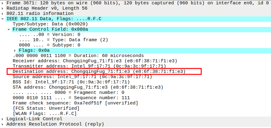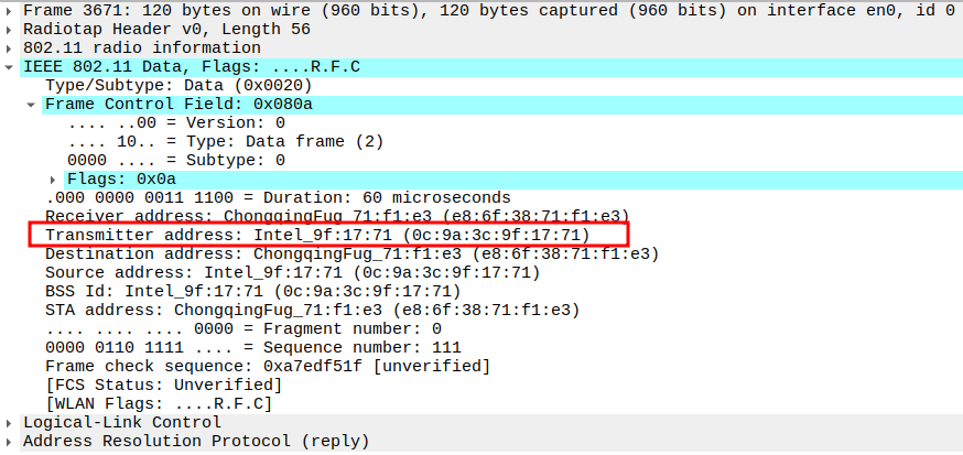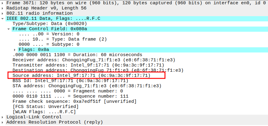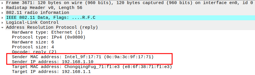 AP MAC (BSSID) — the sender of the ARP Reply.