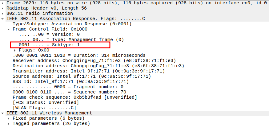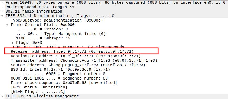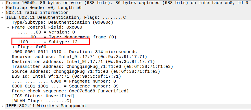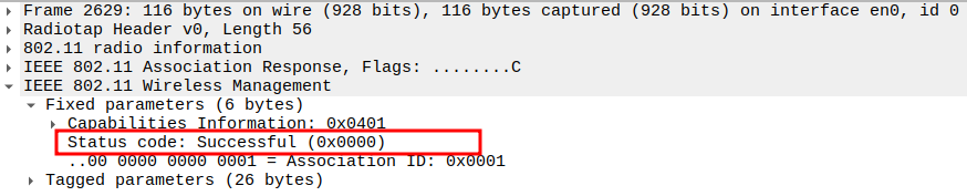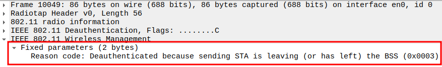 - Includes Reason Code (e.g., 0x0001: Unspecified reason,0x0004 → Disassociated due to inactivity,