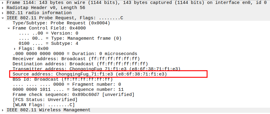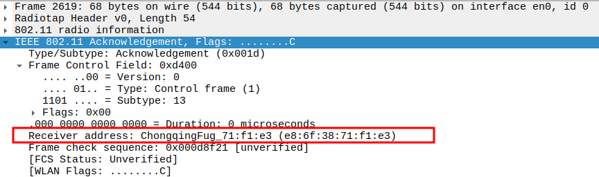 STA MAC address (e.g., e8:6f:38:71:f1:e3).