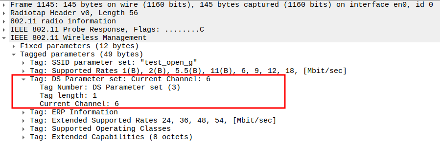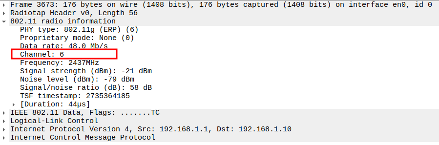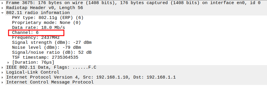 Channel used for transmission (e.g., Channel 6 / 2437 MHz).