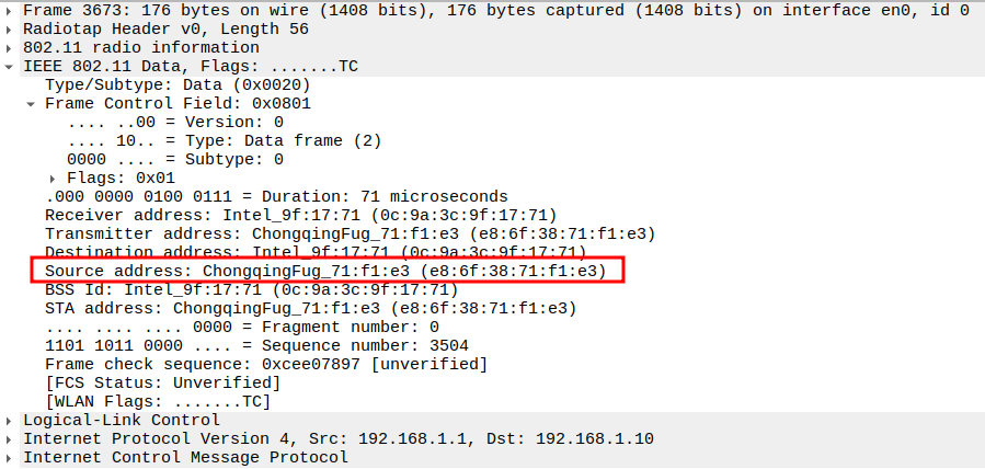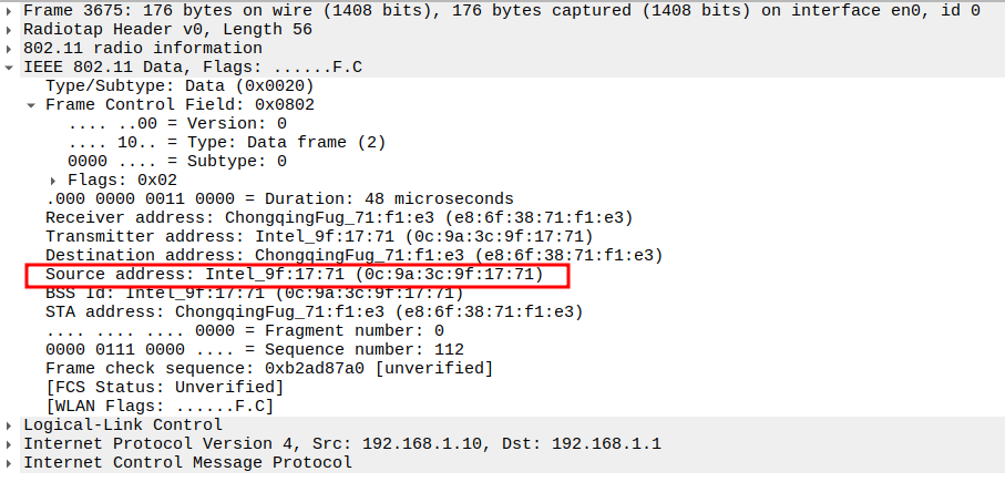 The ICMP Reply is a unicast frame, so the STA replies with an ACK.