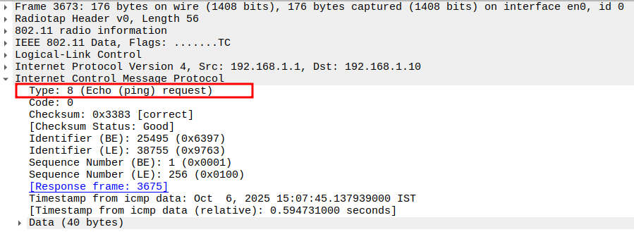 Acknowledgement after ICMP Echo Request Packet Analysis