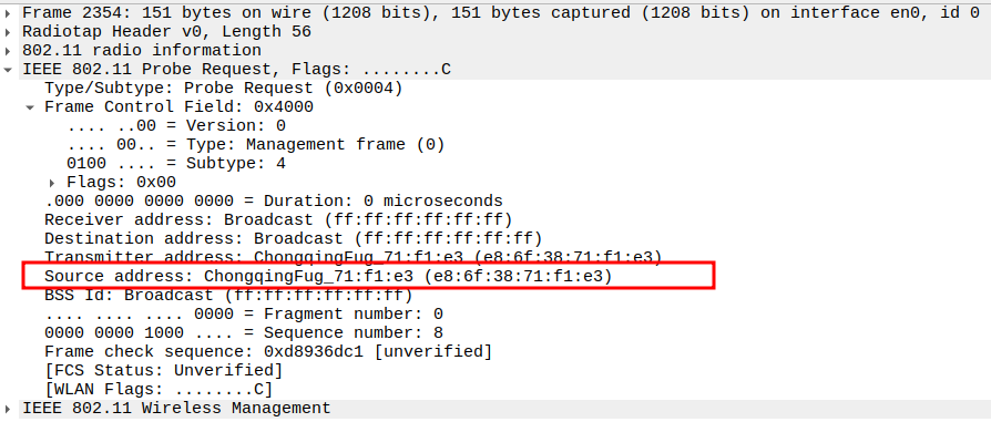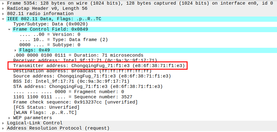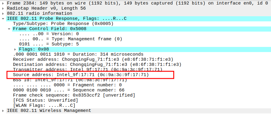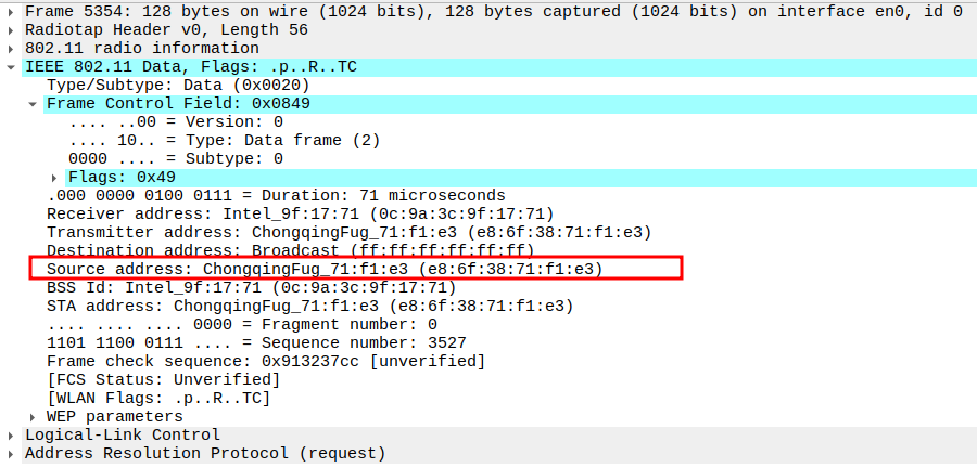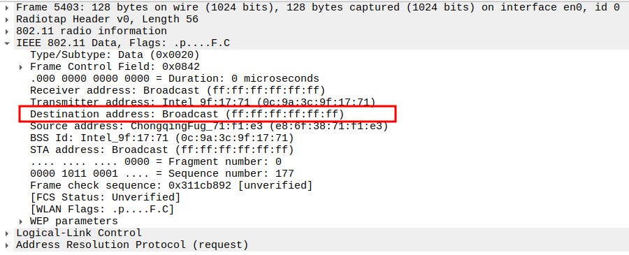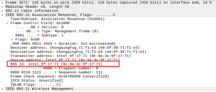 STA MAC — confirms the intended recipient at the link layer.