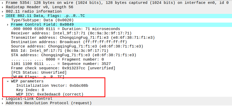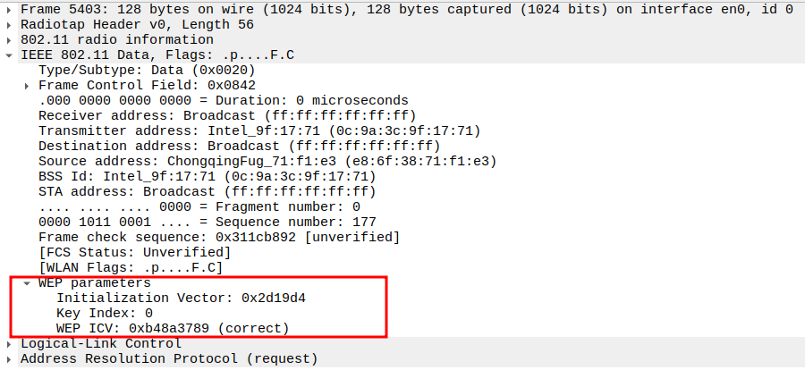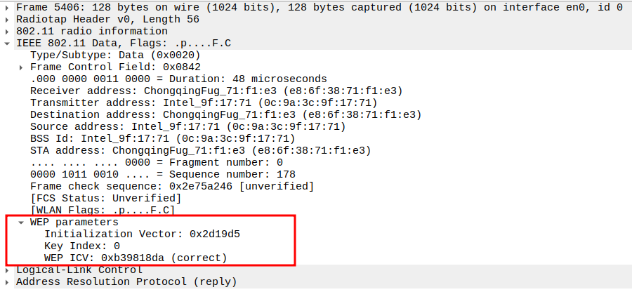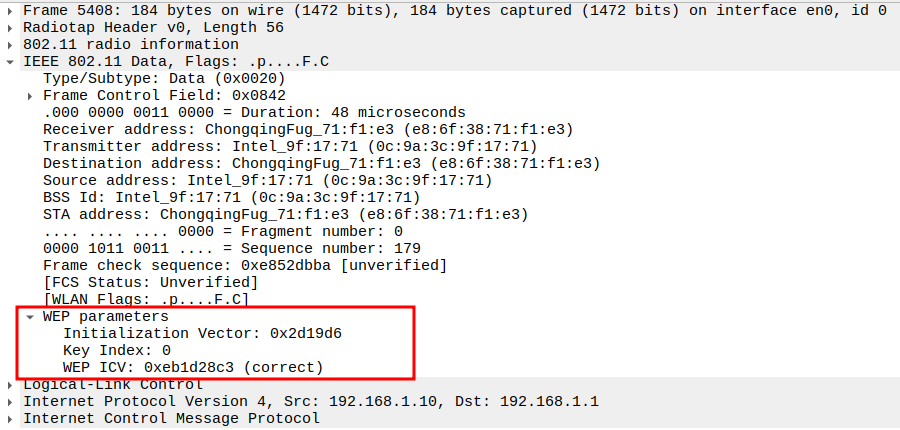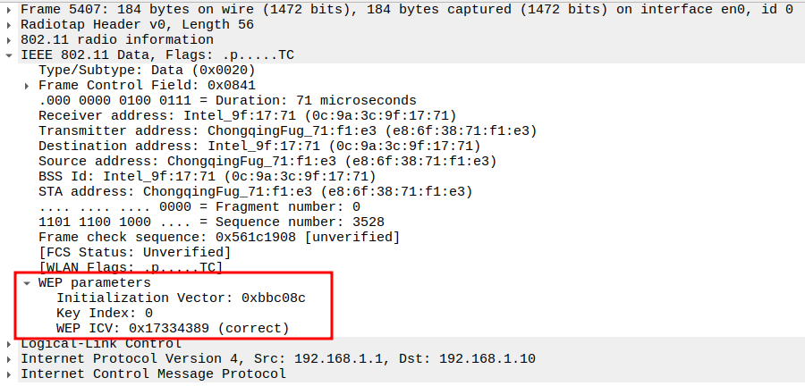 Indicates the WEP key used to encrypt the ICMP payload.