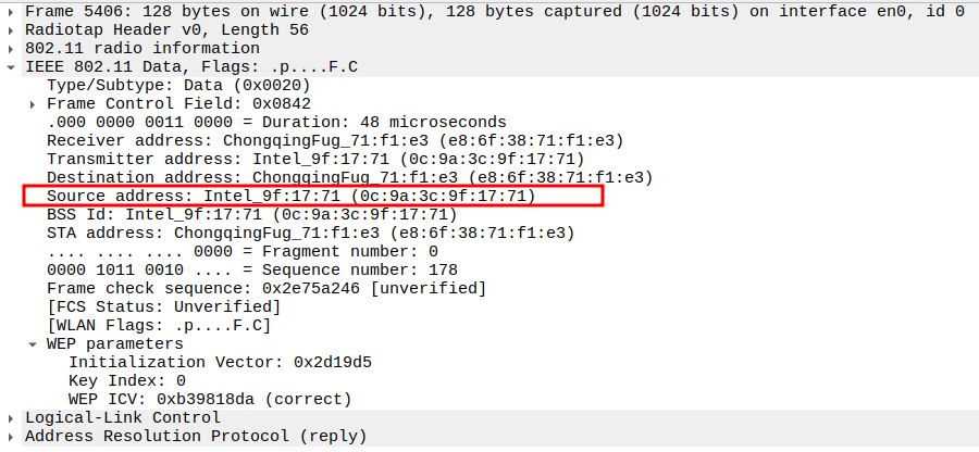 AP MAC (BSSID) — the sender of the ARP Reply.
