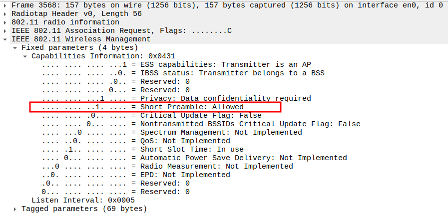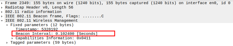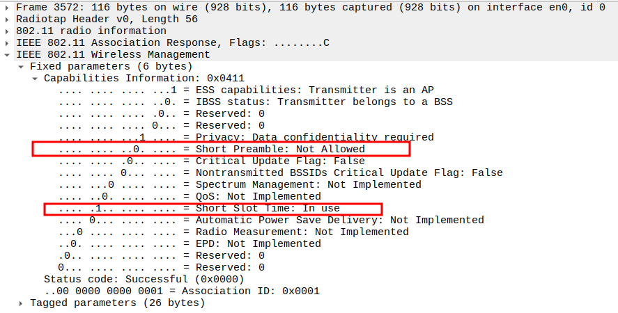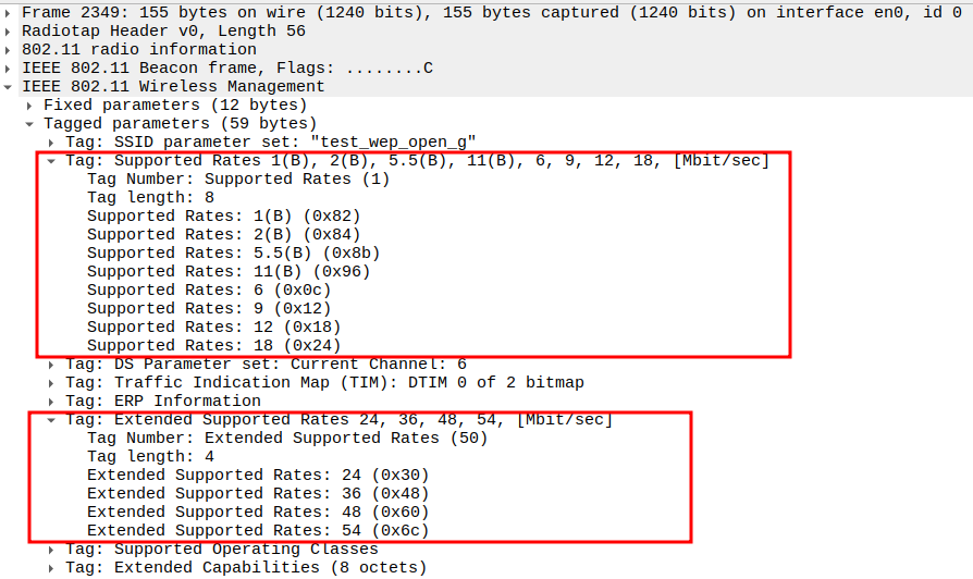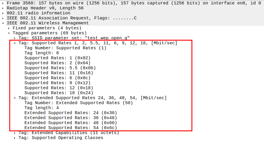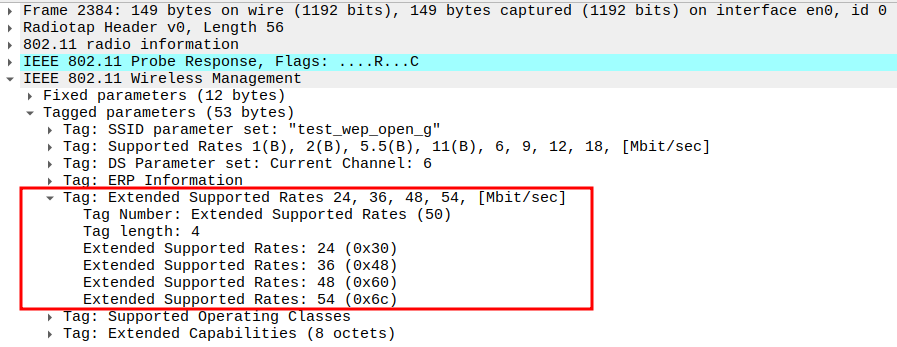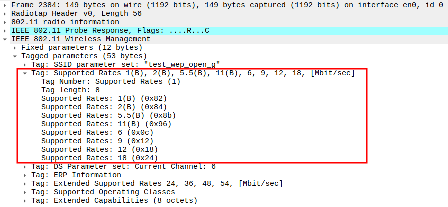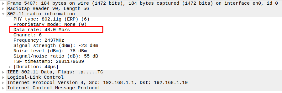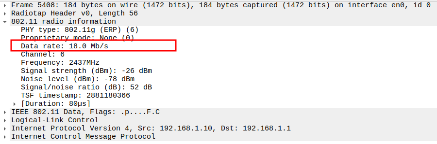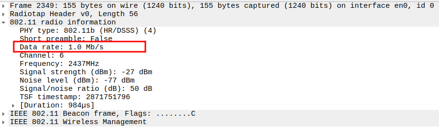 Data Rate indicates the PHY rate used by the AP (e.g., 11 Mbps).