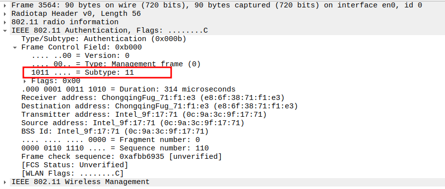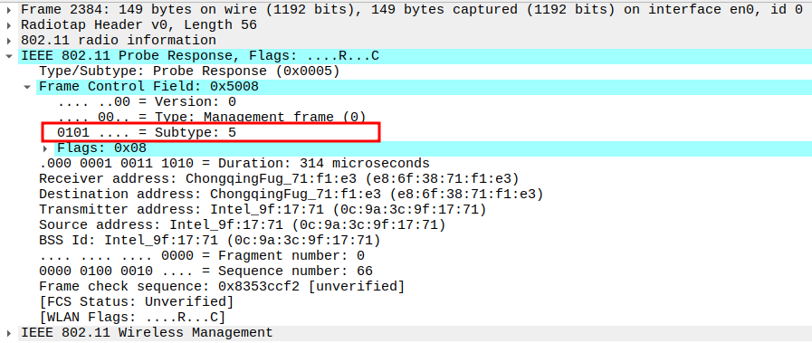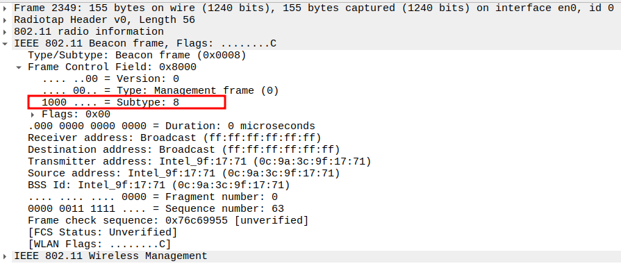 Verify Frame Subtype
