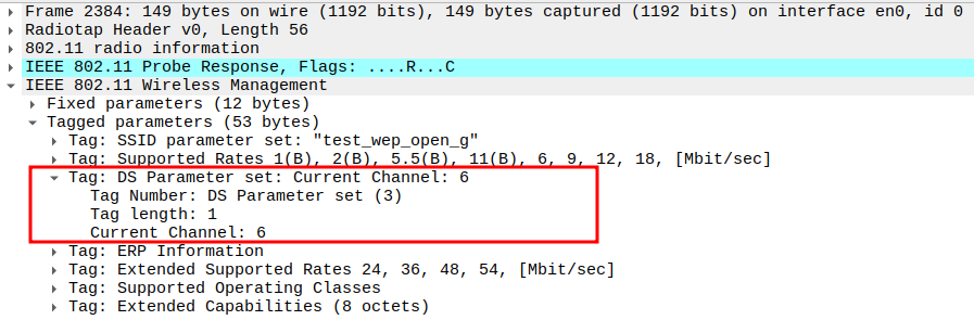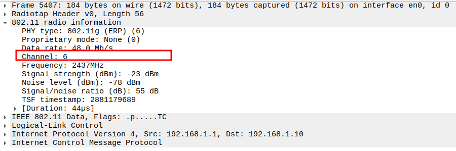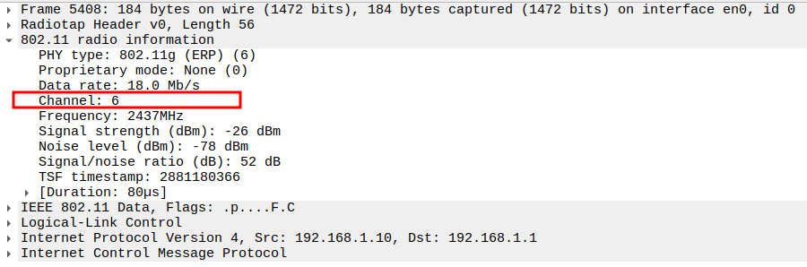 Channel used for transmission (e.g., Channel 6 / 2437 MHz).