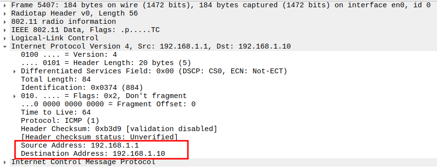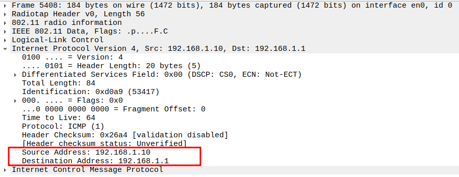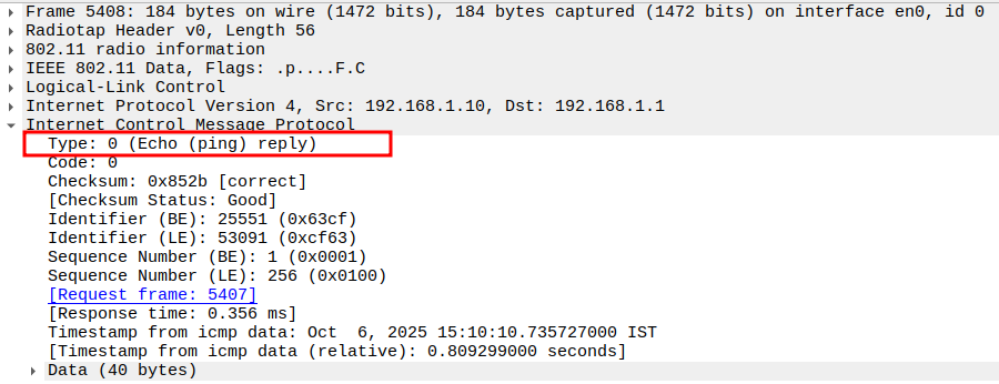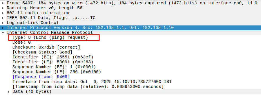 Check if STA is sending ICMP Echo (Ping) Request