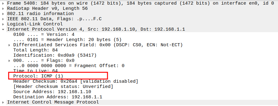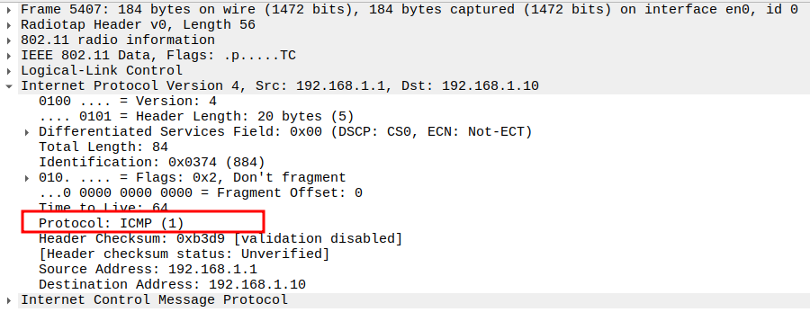 Protocol = ICMP (0x01).