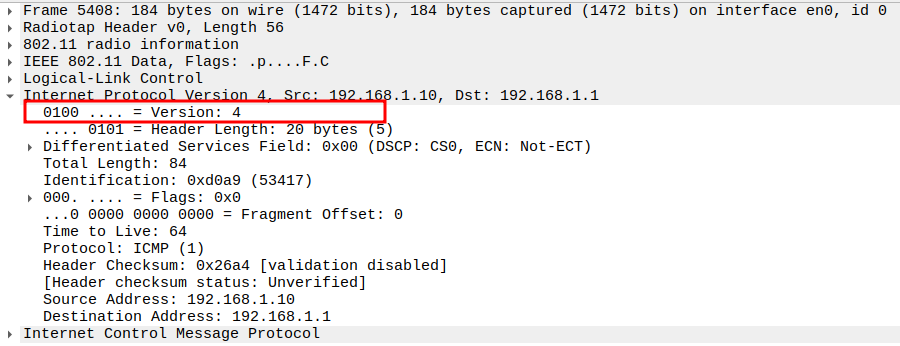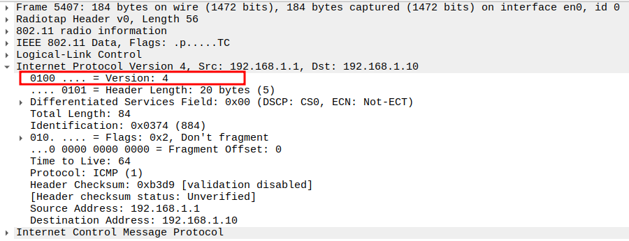 Version = 4 (IPv4).