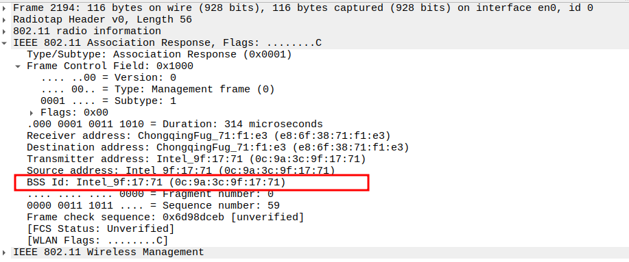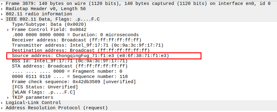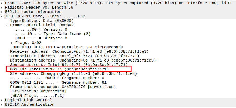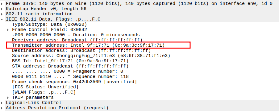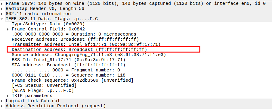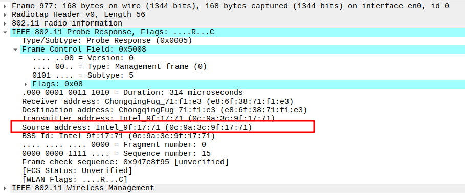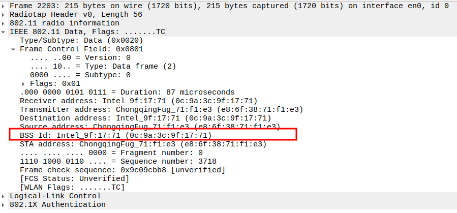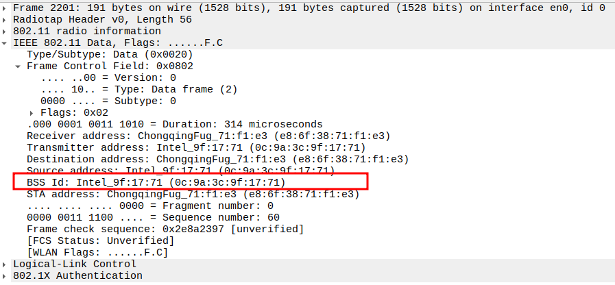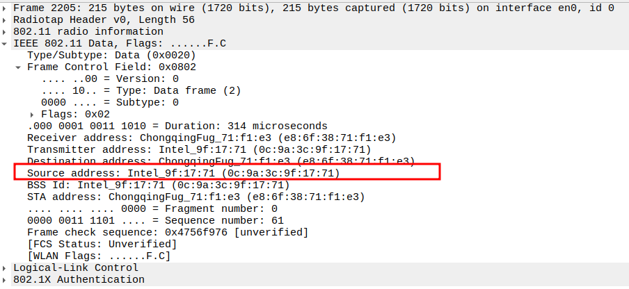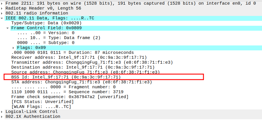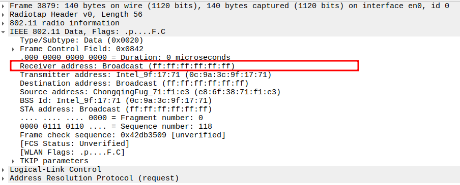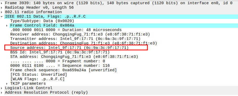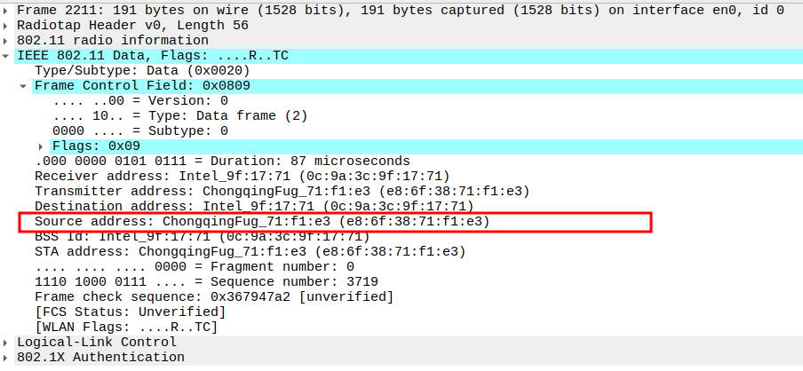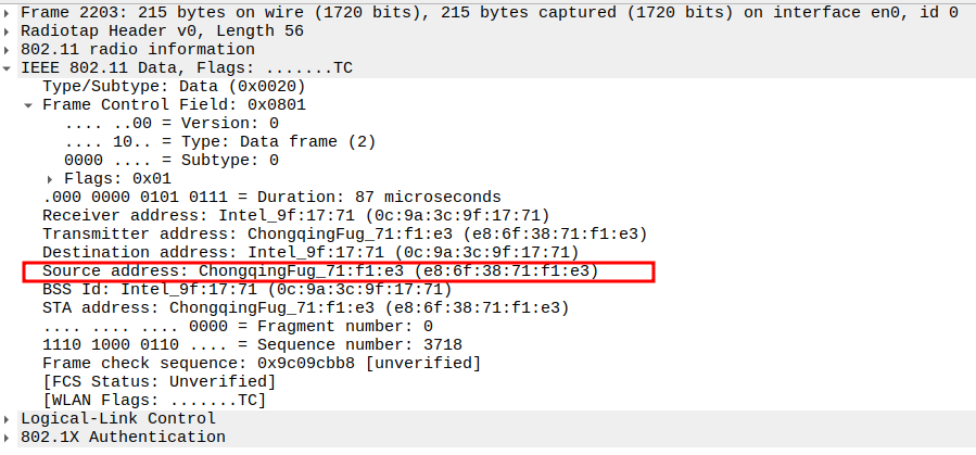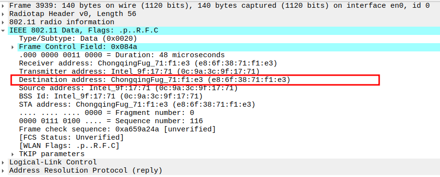 STA MAC — confirms the intended recipient at the link layer.