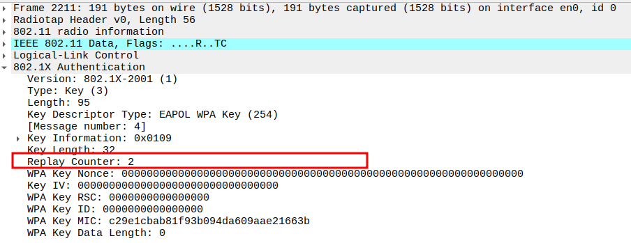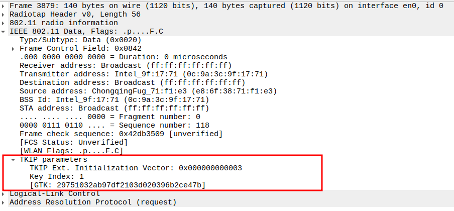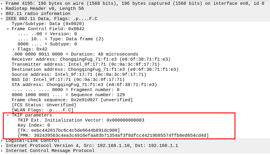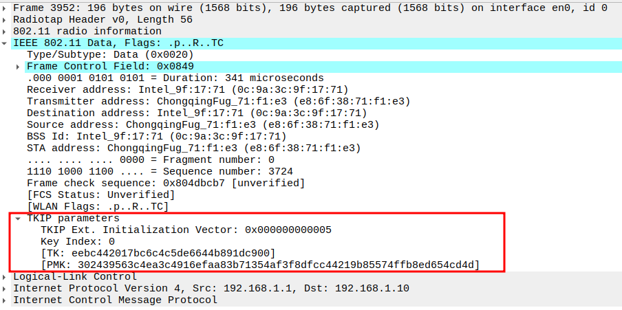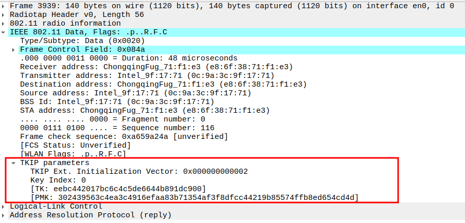 TKIP/WPA Parameters: TKIP Ext. IV (PN = 0x000000000006) provides a unique 48-bit packet number per frame to prevent replay attacks