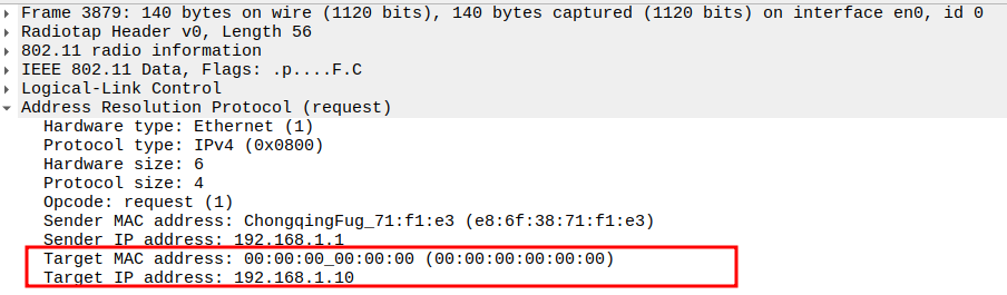 Identifies which device owns the requested IP (192.168.1.10).