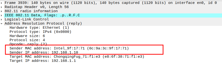 AP MAC (BSSID) — the sender of the ARP Reply.
