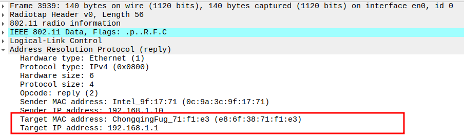 Verify Target IP and MAC