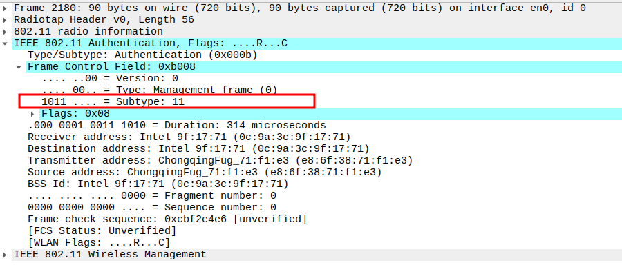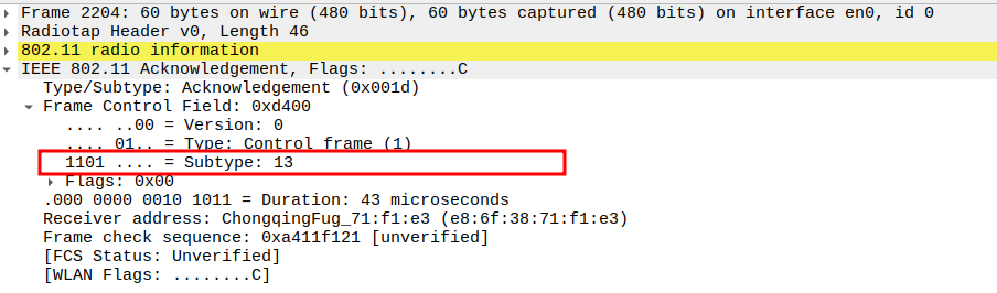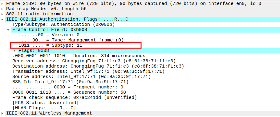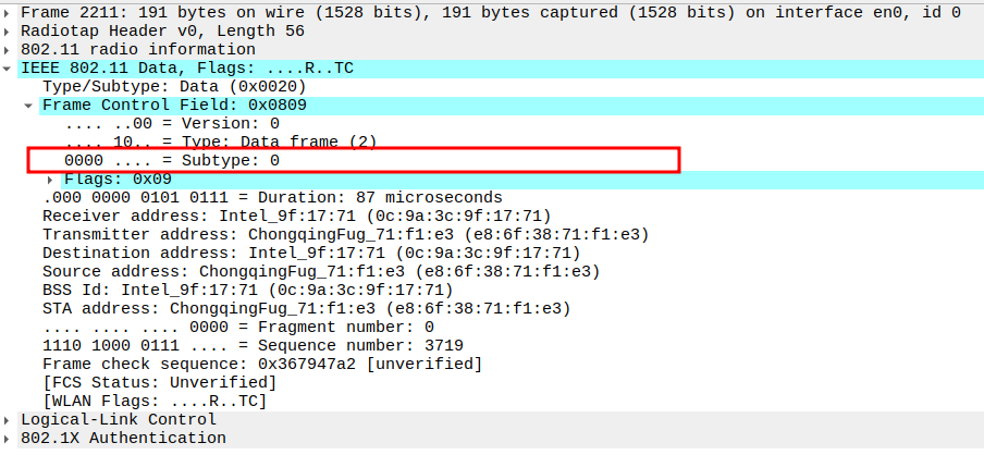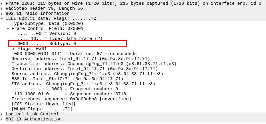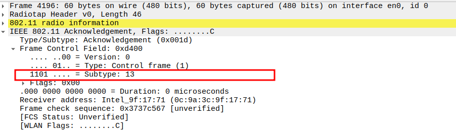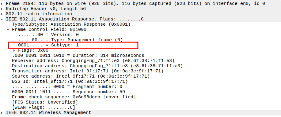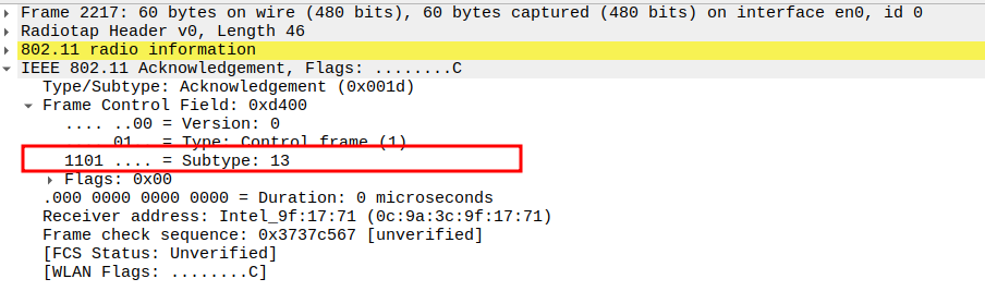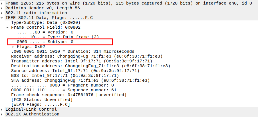Verify Frame Subtype