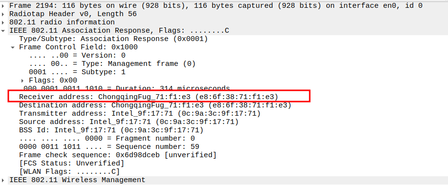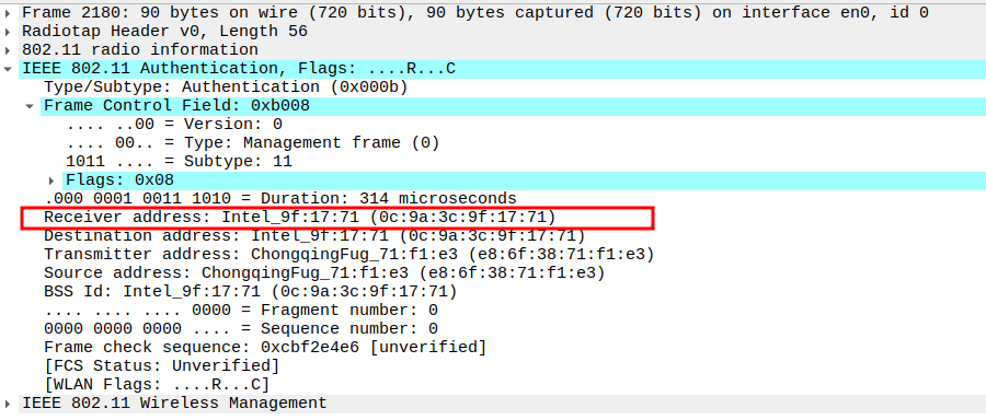 Verify Receiver MAC Address