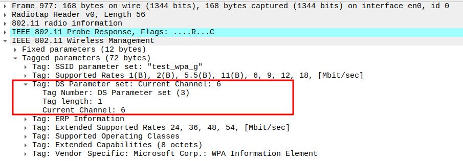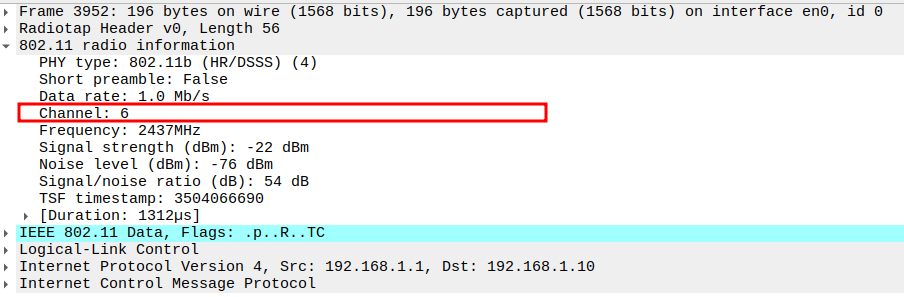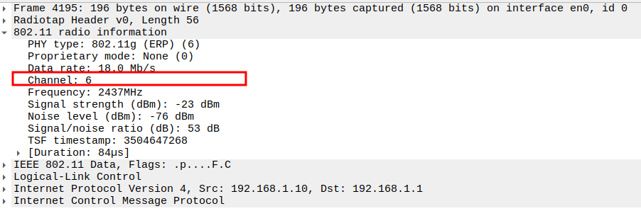 Channel used for transmission (e.g., Channel 6 / 2437 MHz).
