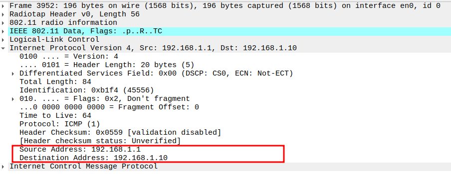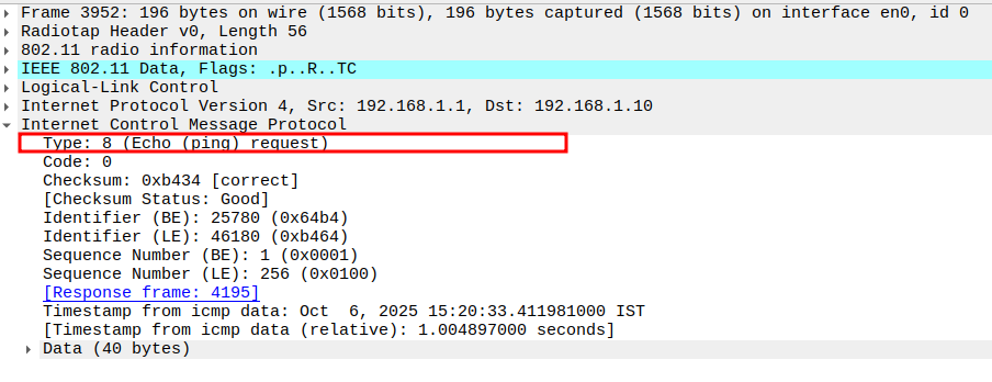 Check if STA is sending ICMP Echo (Ping) Request