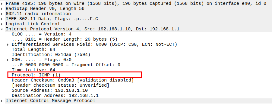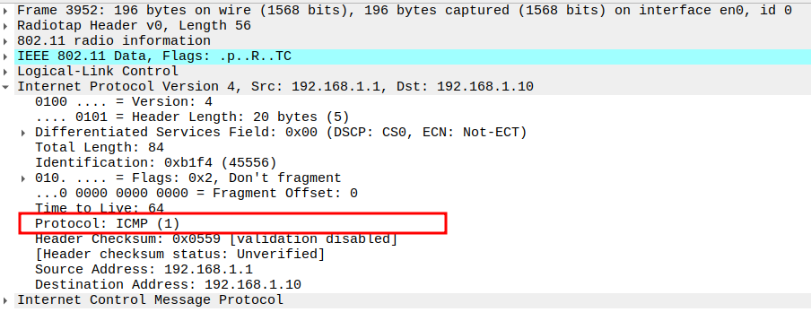 Protocol = ICMP (0x01).