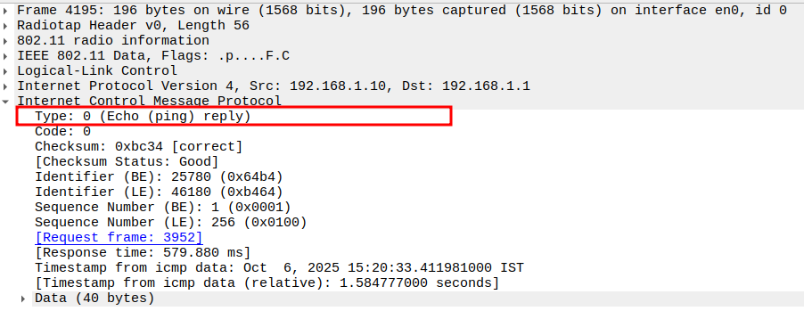 Check if AP is sending ICMP Echo (Ping) Reply