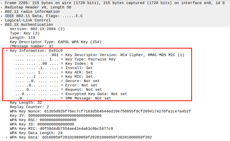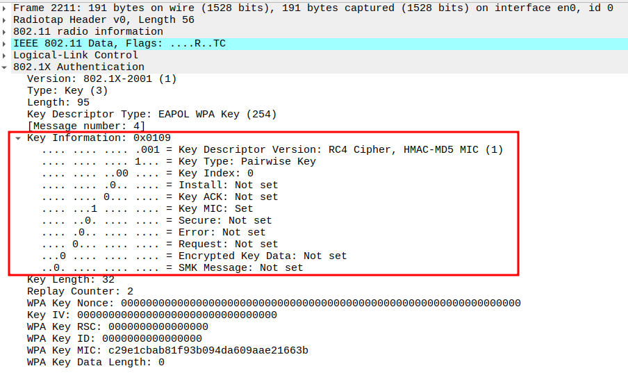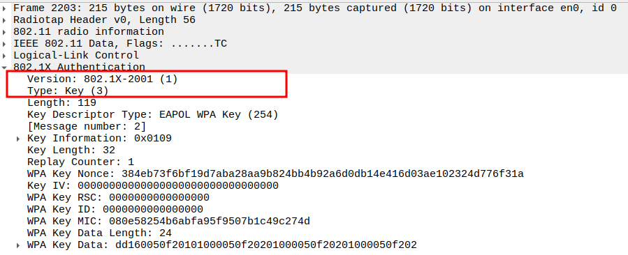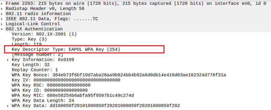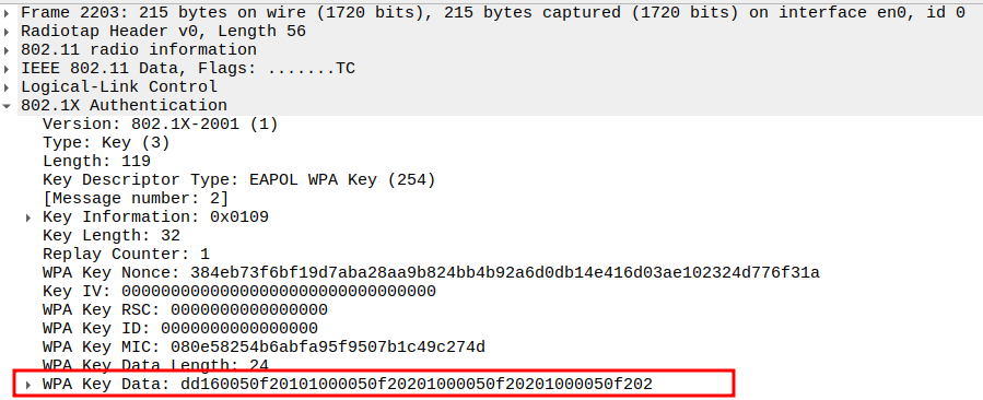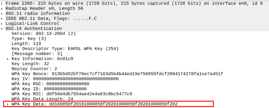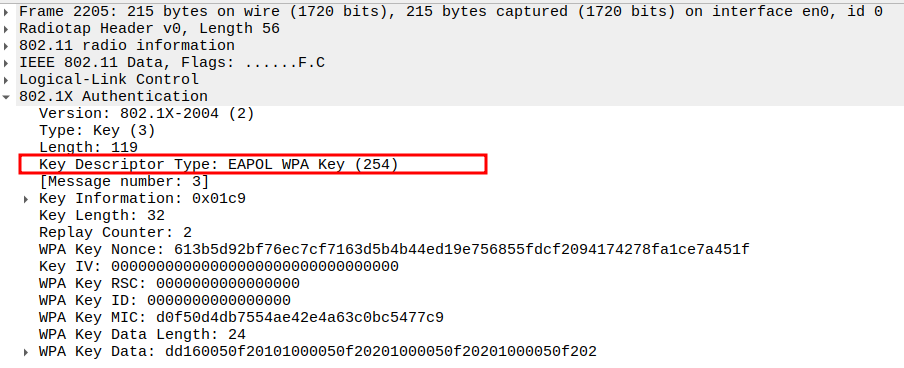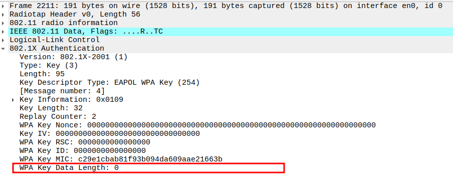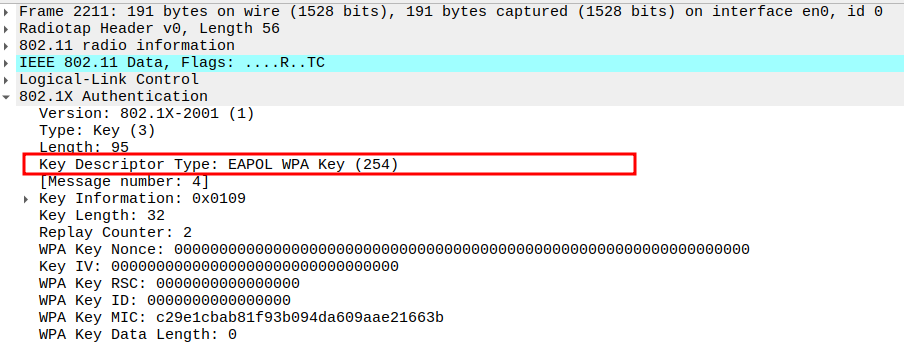 Key Index 0 selects the correct temporal key (TK) generated via WPA 4-way handshake