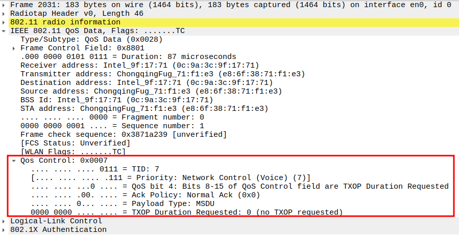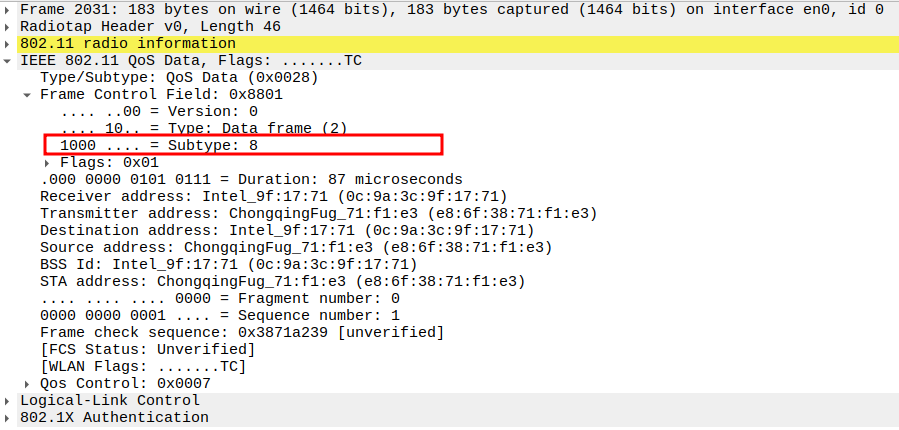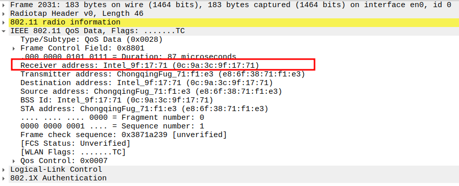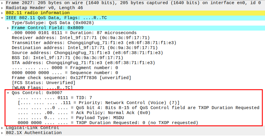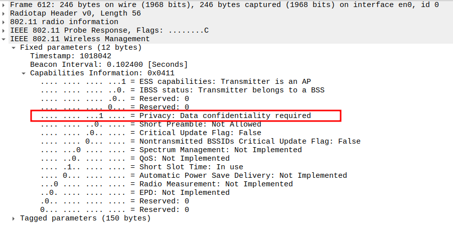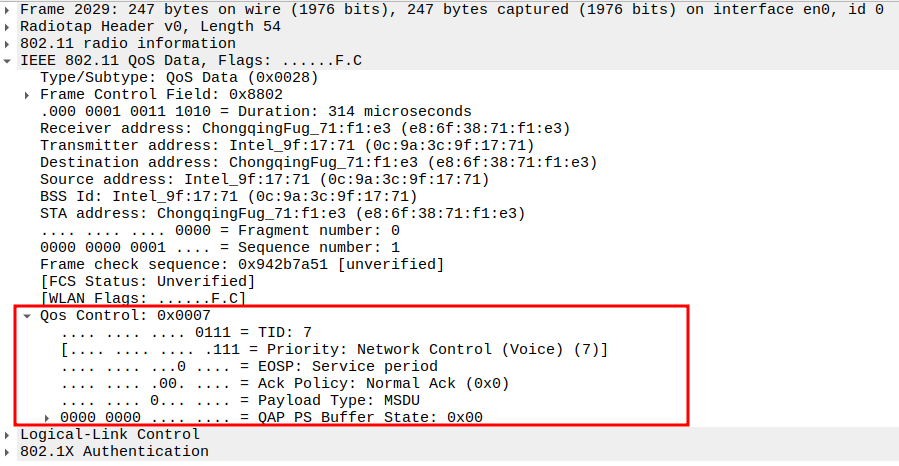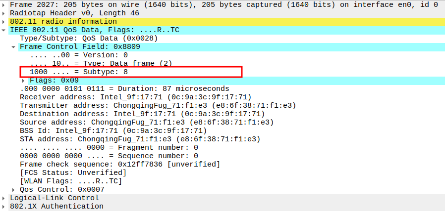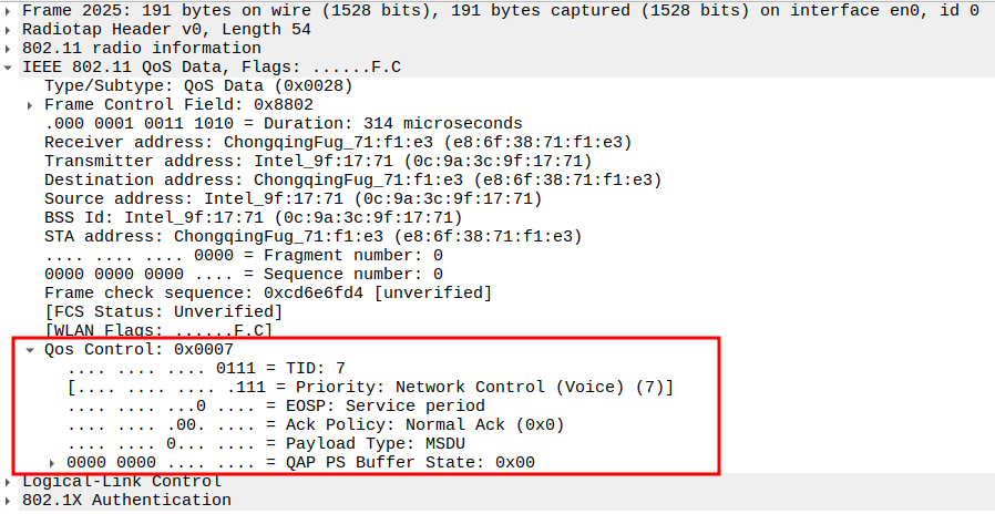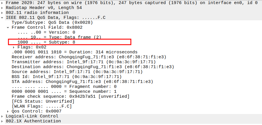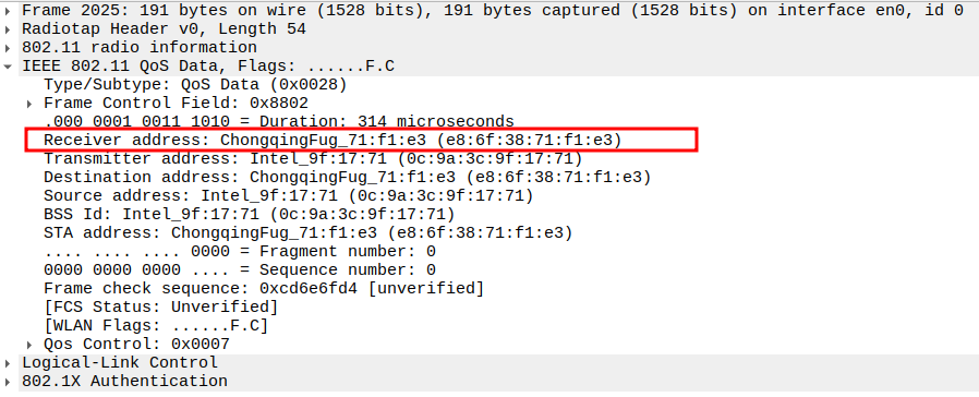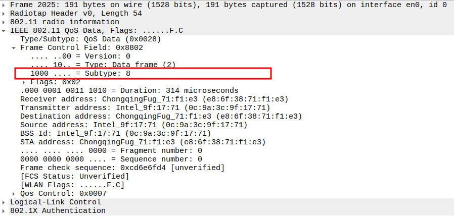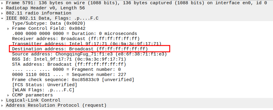 It is encapsulated inside an 802.11 Data frame and protected using WPA2 AES-CCMP
