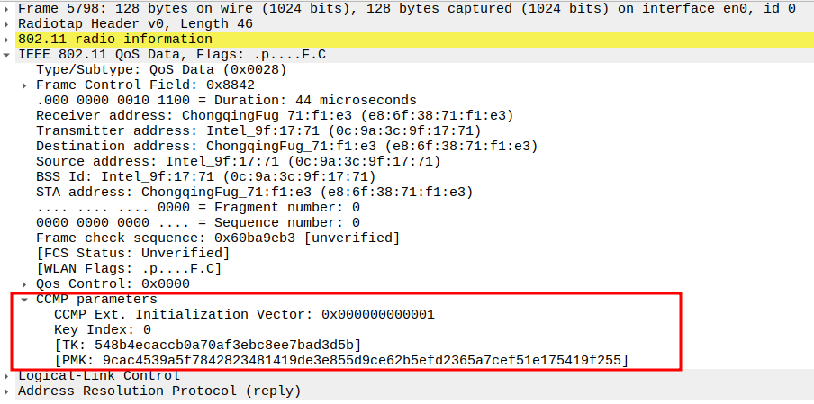 Pairwise Master Key (PMK): 9cac4539a5f7842823481419de3e855d9ce62b5efd2365a7cef51e175419f255