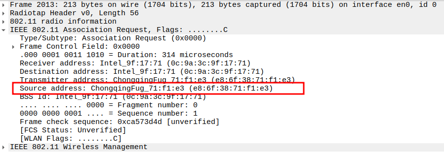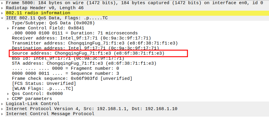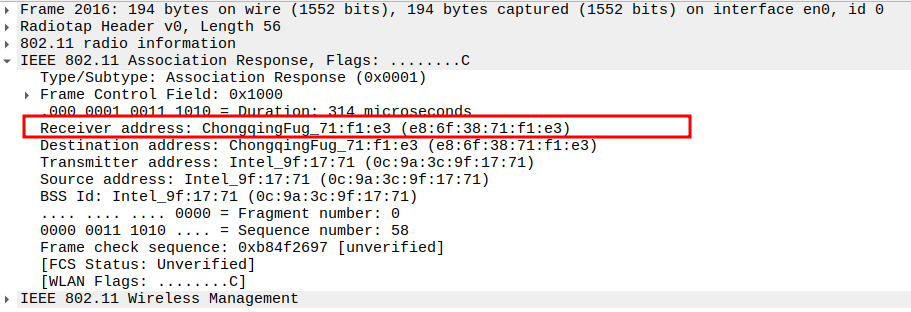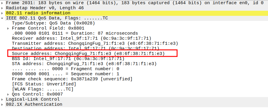 STA MAC address (e.g., e8:6f:38:71:f1:e3).