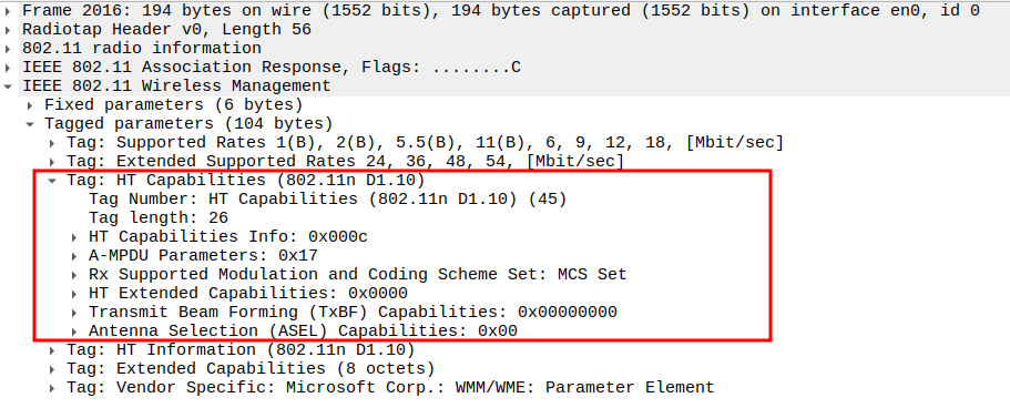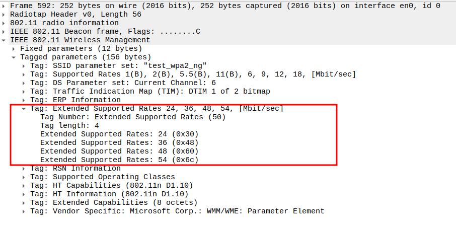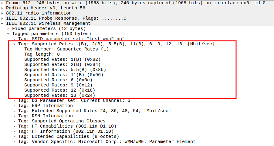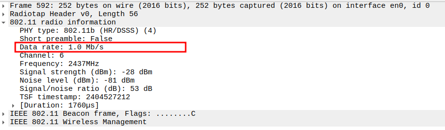 Data Rate indicates the PHY rate used by the STA (e.g., 24 Mbps or 36 Mbps).