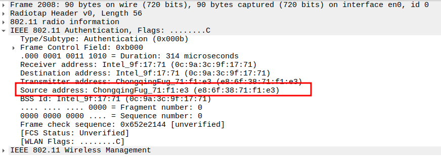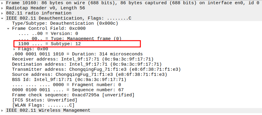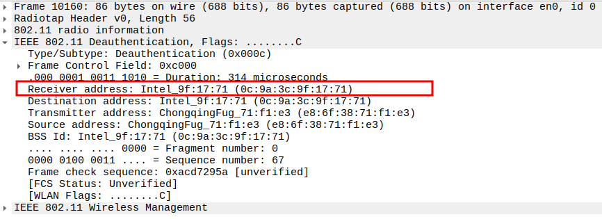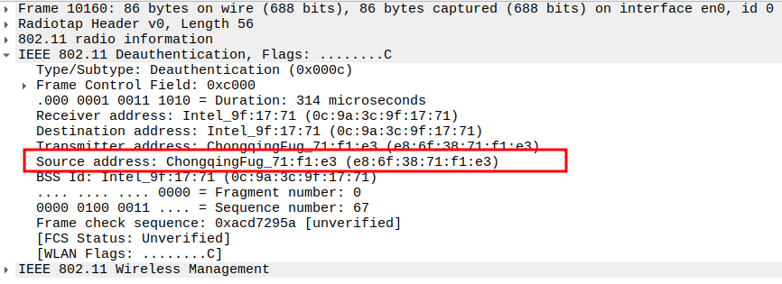 MAC address of the device sending the deauthentication frame (AP or STA).