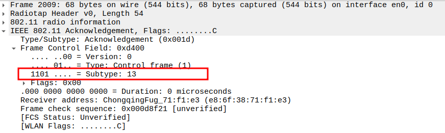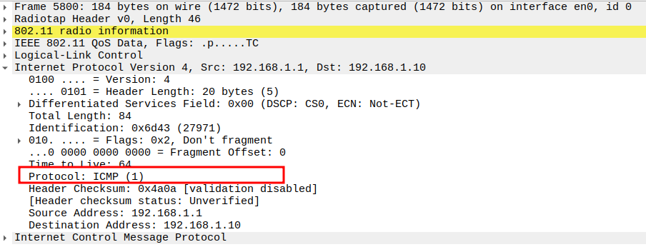 The ICMP Request is a unicast frame, so the AP replies with an ACK.