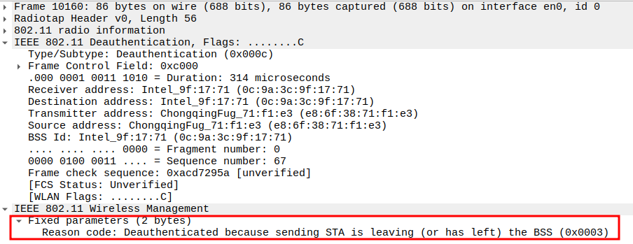 Includes Reason Code (e.g., 0x0001: Unspecified reason).